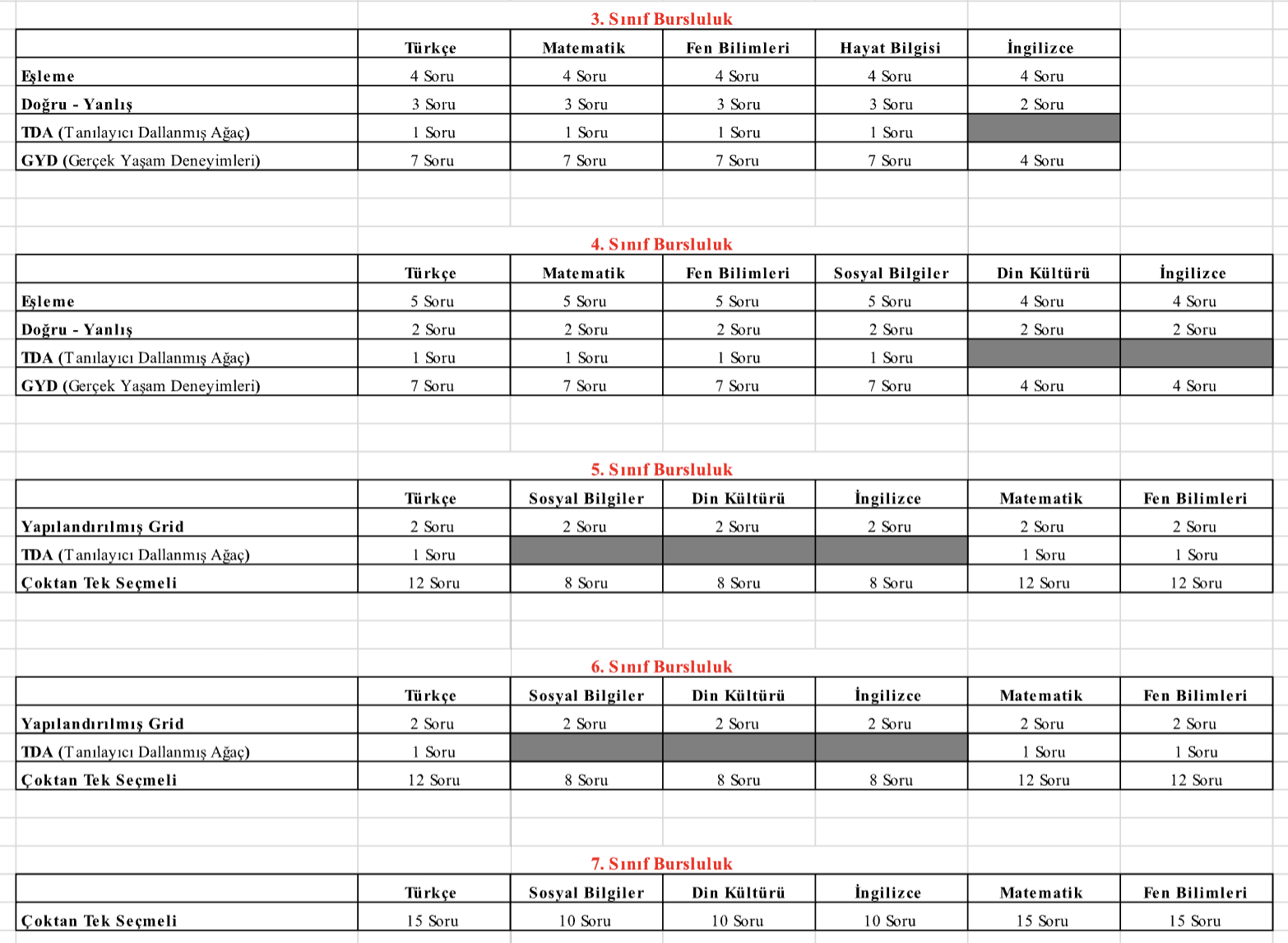 Bursluluk Sınavları bir adettir. Kazanım dağılımı aralık ayı sonuna kadar olan konuları kapsamaktadır.